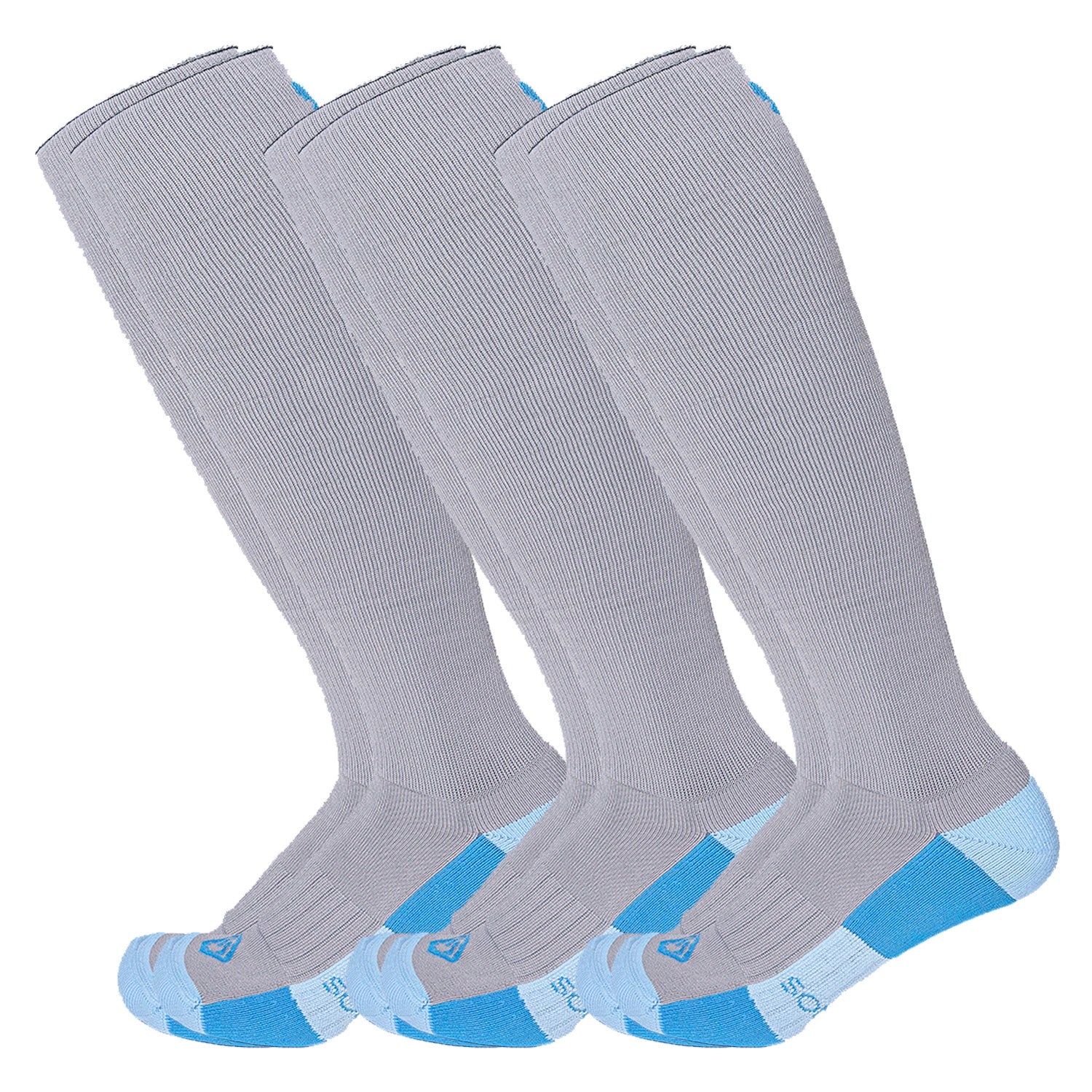Pack of 3 high-top compression socks (14-17 mmHg) made of polyamide and reinforced sole. With this Savings Pack: