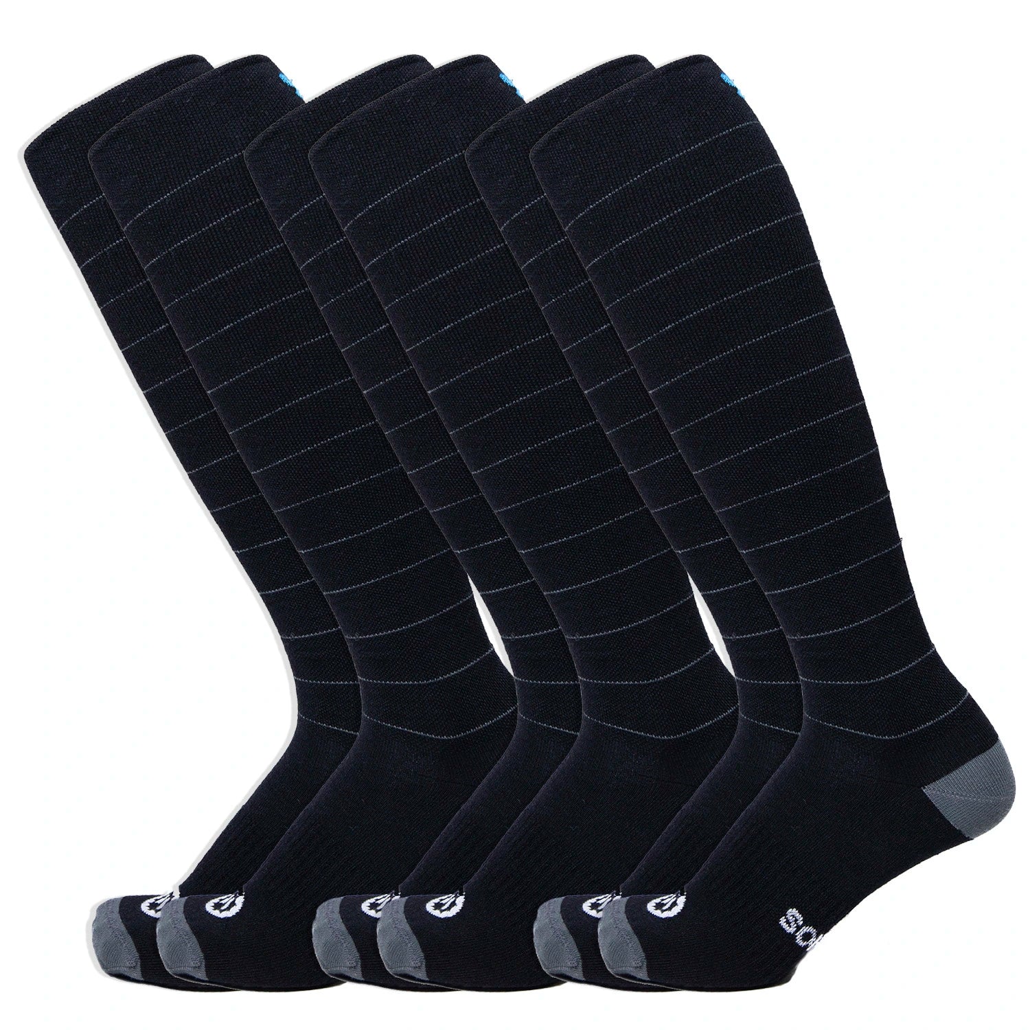 Pack of 3 high-top compression socks (14-17 mmHg) made of Coolmax. With this Savings Pack: